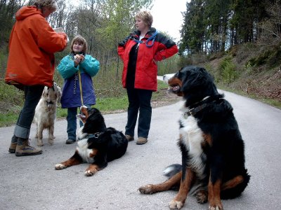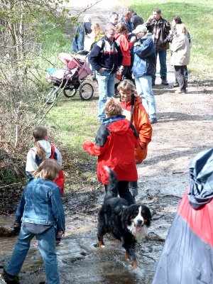 Sandy als Schlammkuh :-) Aber das war ein beliebtes Berner-Outfit an diesem Tag. Nach der Rückkehr konnten sich alle die müden Knochen etwas regenerieren und gleichzeitig etwas gegen Hunger und Durst unternehmen. Es war für Zwei- wie Vierbeiner ein gelungener Tag. Dazu trug auch das Wetter und die von Familie Breuer ausgesuchte schöne Wanderstrecke bei. |