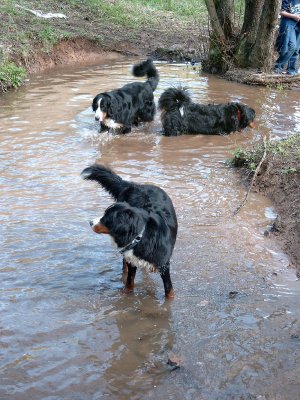 | Nach einem weiteren Stück Weg wurde eine größere Pause eingelegt. Für die Hunde die Gelegenheit, ausgiebig zu plantschen. | ![]() |