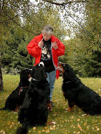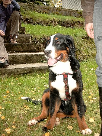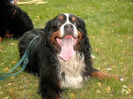 Derweil langweilt Domino sich und zeigt Frauchen, wie sich ein Berner richtig wälzt. |
