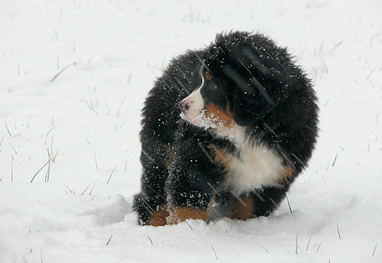 Wenigstens friert ein echter Berner bei diesem Wetter nicht. Nicht mal als Welpe.
