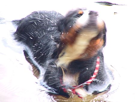 Nein Herrchen, ich will nicht wieder aus dem Wasser kommen. Da bin ich doch gerade erst reingesprungen.