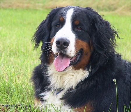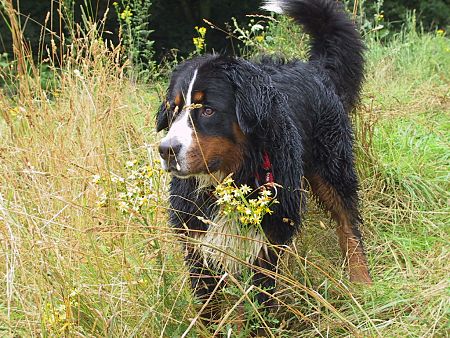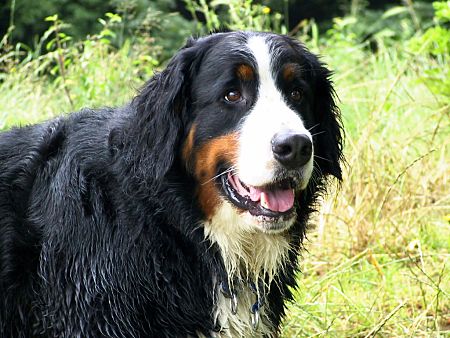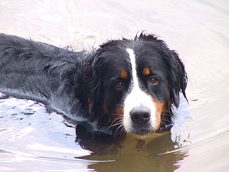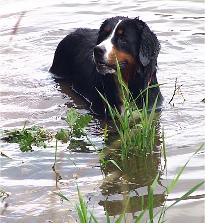 Mitte Juli 2004 musste ich nach einem Defekt eine Kamera testen und habe als Motive (natürlich) unsere beiden Berner Domino und Ginja genommen. Für das Internet ist die Auflösung gut genug.