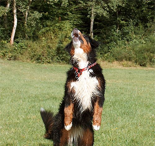 Sich für Leckerchen hinzulegen, finde ich aber ganz in Ordnung. Das ist eine Übung für einen Berner Sennenhund!