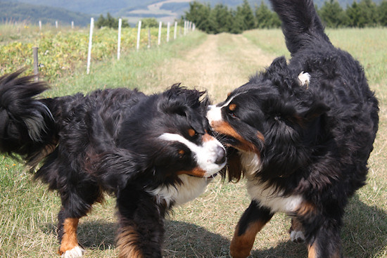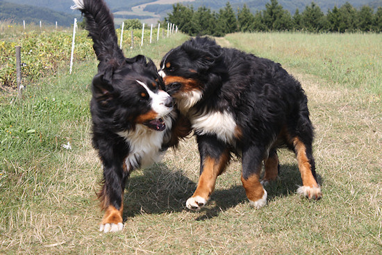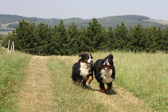 an einem sonnigen Augusttag im Jahr 2013 habe ich ein paar Schnappschüsse von unseren beiden Berner Sennenhundrüden Duncan und Camillo gemacht. Einfach das Sportprogramm gewählt, Serienbildfunktion eingeschaltet, die beiden abgesetzt und dann zurück gegangen. Danach musste ich nur noch den Auslöser festhalten. Herausgekommen sind diese Fotos. Viel Spaß beim Betrachten.