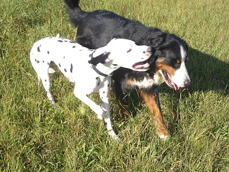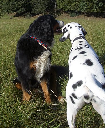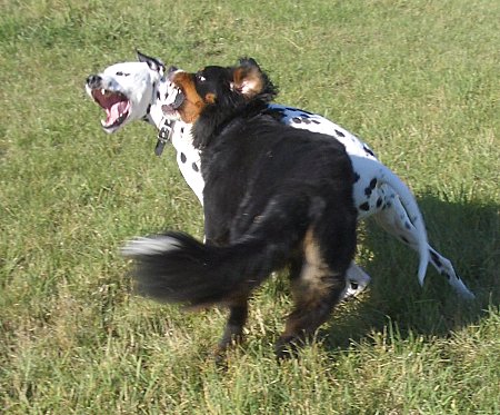 Das Lecken der Lefzen ist eine Beschwichtigungsgeste. Ebenso das Wegdrehen des Kopfes, was sagen will: Ich schau dich nicht an. Übersetzt heißt das soviel wie: Ich will dir nichts böses.