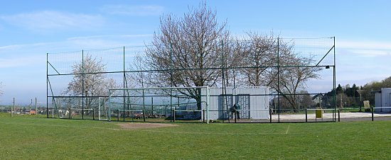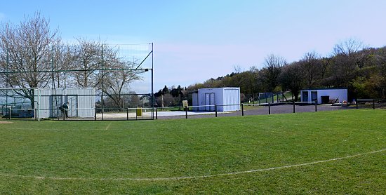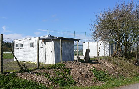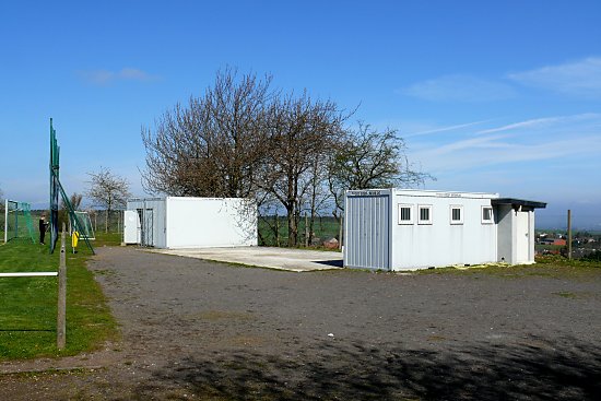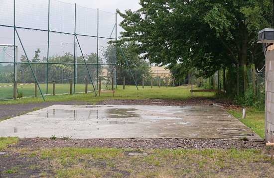 Es stehen nur einige Container auf dem Sportplatz