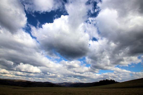 Schönwetterwolken mit einer wunderbaren Fernsicht bieten rundum die