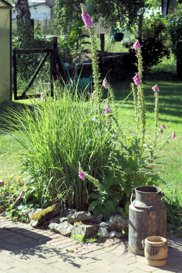 Außerdem sieht es hübsch aus. Nicht ordentlich und gepflegt, aber wer will das auch überall haben? Rasenfläche haben wir ja auch noch.