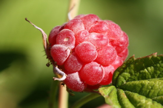 Die Tayberry haben wir gepflanzt. Da es aber ziemlich weit bis hinter die Scheune ist, werden sie nicht (oder nur im Notfall) gegossen. Und die Hühner mögen sie wohl auch. Daher ist die Ernte spärlich...