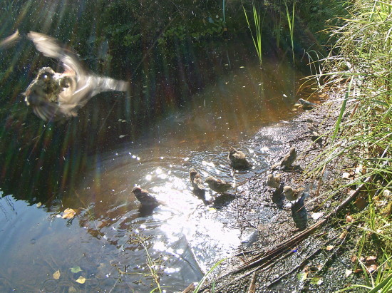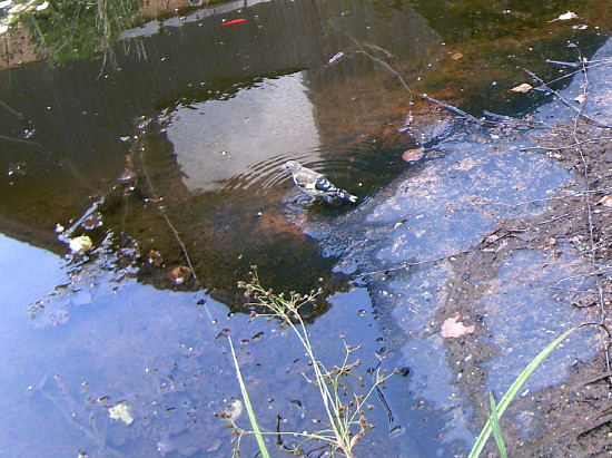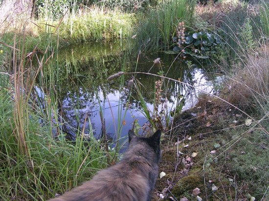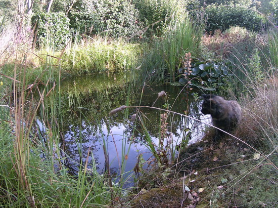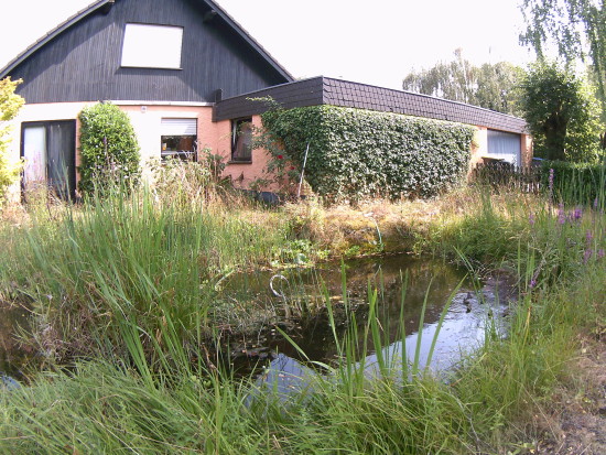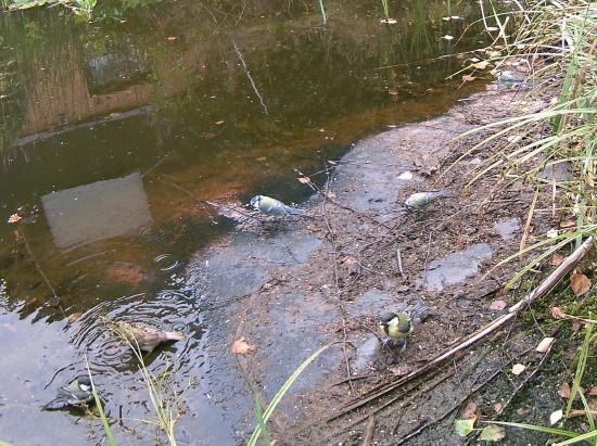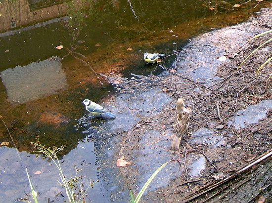 Unseren Gartenteich habe ich ja auf den Seiten über unseren Garten vorgestellt. 2020 ist jetzt schon das dritte Jahr in Folge mit viel zu wenig Regen. Der Wald stirbt ab, obwohl hier in der Hocheifel die Laubbäume noch relativ glimpflich davonkommen. Den Fichten geht es schlecht und an manchen Stellen sieht auch der Laubwald schon im August herbstlich aus. Das Wasser vom Hausdach reicht längst nicht mehr, um die Wasserverdunstung auszugleichen, so dass wir aus der Leitung nachfüllen mussten. Da der Teich aber einer der wenigen Wasserstellen in der Gegend ist, kommen viele Vögel zum trinken und baden. Größere Tiere (mit Ausnahme von Nachbars Katze) konnte ich aber keine finden.