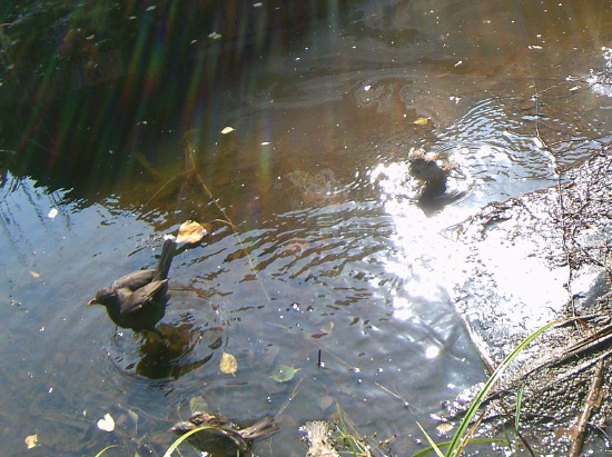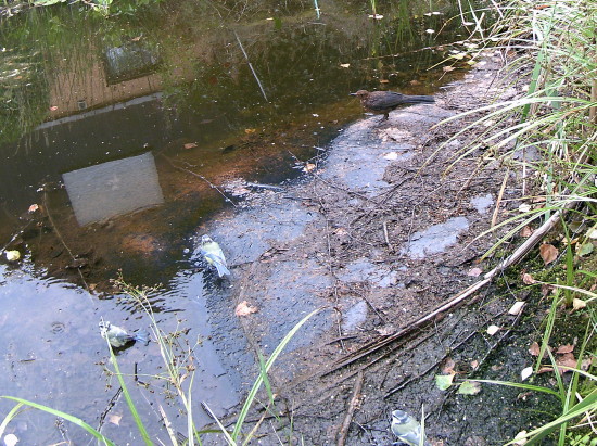 Eine Amsel gesellt sich hinzu.