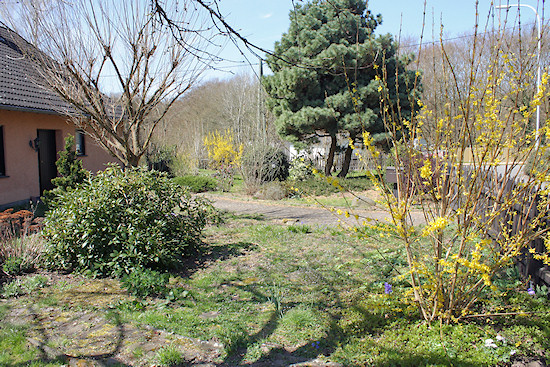 Im Frühjahr sieht der Vorgarten kahl aus.