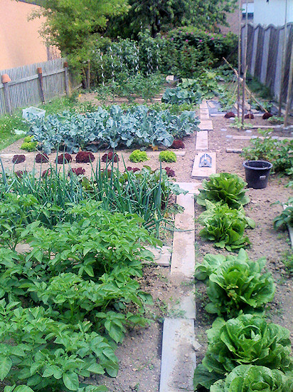 Unser Pflanzgarten 2014. Einfache Bretter dienen als provisorische Wege und Beeteinfassungen.
