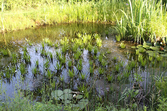 Am Teich wächst die Krebsschere.
