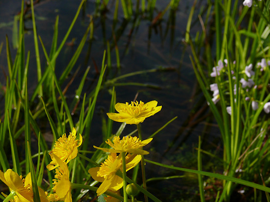 Am Teich blühen wieder die Blumen, wie hier die Sumpfdotterblumen.