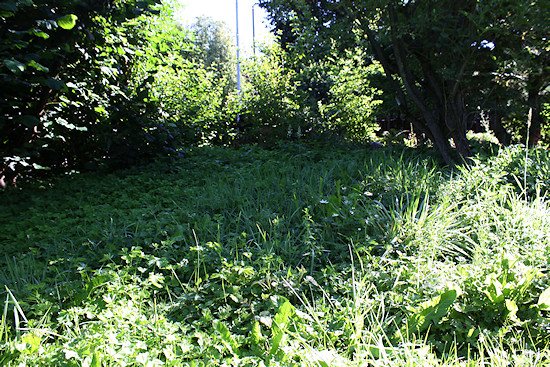 Eine "Gierschplantage". Das Kraut kann man essen, was wir auch probiert haben. Ein kulinarischer Genuss ist damit aber nicht verbunden, abschreckend ist es aber auch nicht. Allerdings wuchert das Zeug dermaßen, dass es kaum in den Griff zu bekommen ist. Vertreiben lässt es sich schon mal gar nicht. Da hilft nur mähen. Wenn wir großes Glück haben, kämpft sich der Bärlauch bis dahin vor und nimmt uns die Arbeit ab. Bärlauch ist auch deutlich leckerer.
