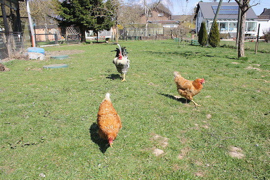 Diese Hühnerschar hat schon zwei Jahre durchgehalten, ohne vom Fuchs dezimiert zu werden. Und jetzt im Frühjahr legen sie wieder besonders viele leckere Eier.