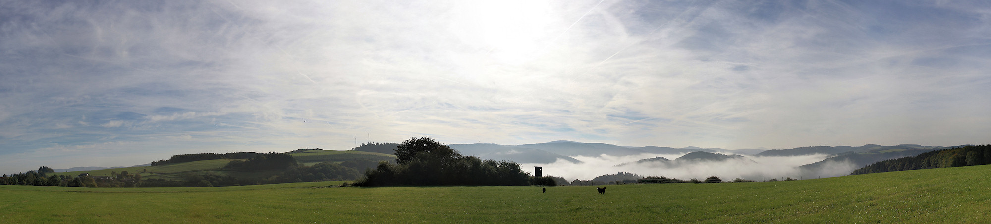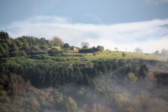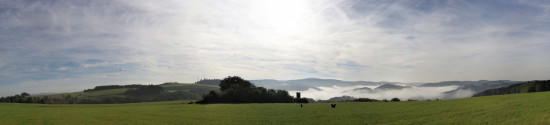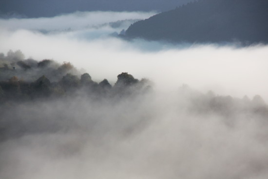 Ende September: Die jetzt kühlen Nächte führen zu Frühnebel, der in der aufgehenden Sonne besonders gut aussieht. Ein wunderbarer, wenn auch kurzer Moment.