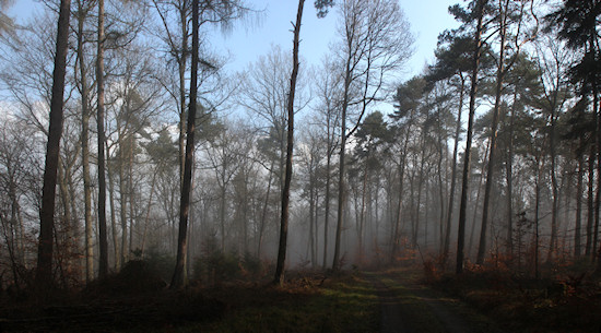 Doch so langsam löst sich auch hier zwischen den Bäumen der Nebel auf.