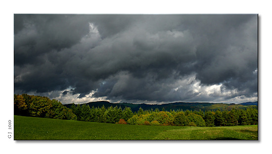 Am eindrucksvollsten ist das Wetter, wenn es wechselhaft ist. Auf diesem und den nachfolgenden Fotos zog gerade eine massive Regenfront ab und dahinter kam die Sonne heraus. Hierdurch ergaben sich besonders eindrucksvolle Wolkengebirge und sonnenbeschienene Vordergründe.