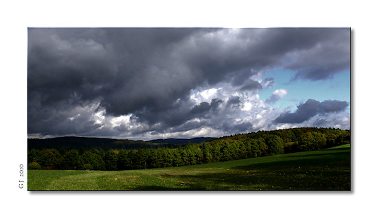 Sonne und Schatten auf der Landschaft auf der einen Seite, ...