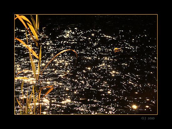 Auf unserem Gartenteich befindet sich eine dünne Eisschicht.
