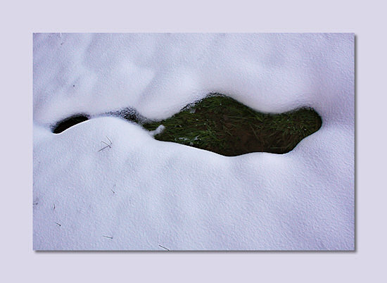 Schmelzwasser hat die Schneedecke durchbrochen.