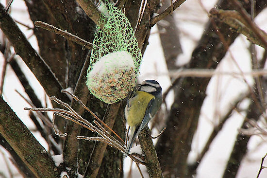 Die Blaumeisen müssen jetzt durchgefüttert werden.