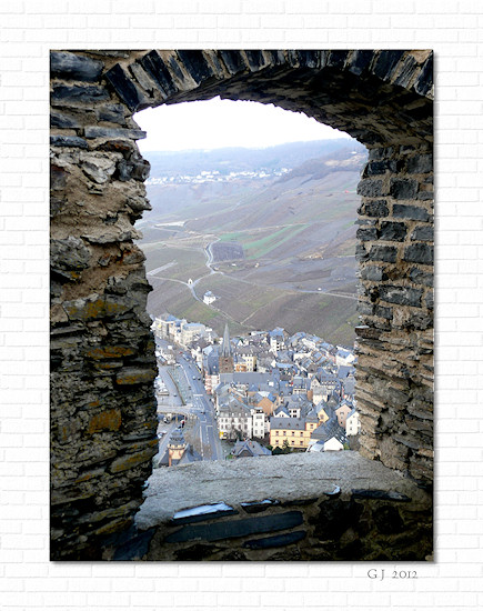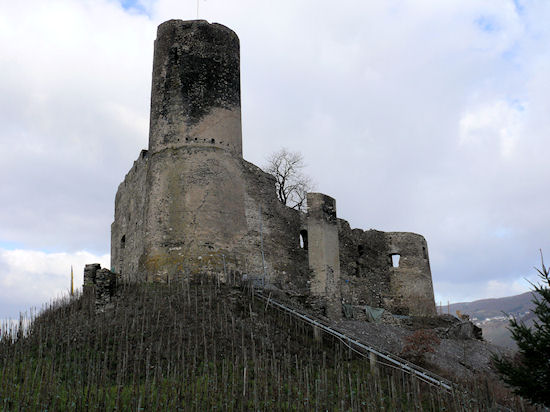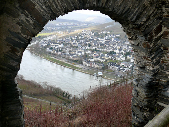 Durch die noch vorhandenen Fensteröffnungen hat man einen schönen Blick auf Kues und ...