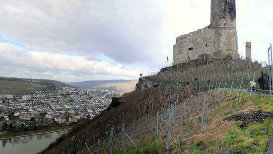 Von hier aus hat man einen wahrlich spektakulären Ausblick über Bernkastel-Kues und die Moselschleife.