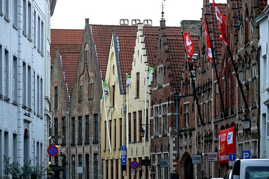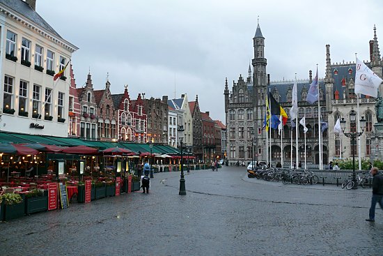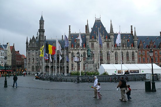 Nachdem wir uns in einem Hausflur erst einmal trockene Sachen angezogen haben, sind wir nach Brugge gefahren und haben im Hotel eingecheckt. Anschließend sind wir en wenig durch die verregneten Straßen geschlendert. Das Licht war zum fotografieren recht trübe, dafür waren so gut wie keine Menschen auf den Straßen.