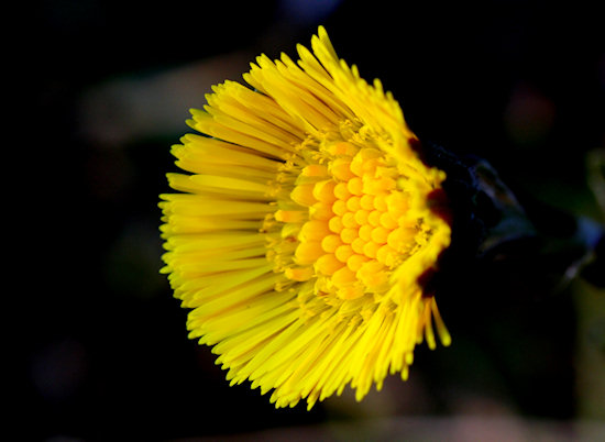 Auch bei dieser Huflattichblüte ist trotz 1/50 Verschlusszeit und Blende 9 alles super scharf. Das war im Wald und spät am Nachmittag. Also alles andere als optimale Belichtungsbedingungen.