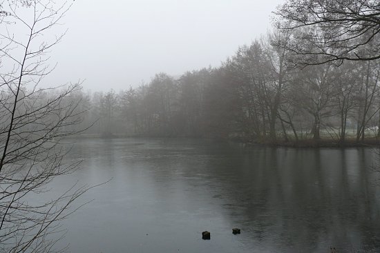 Der Vorstau ist mit einer dünnen Eisschicht bedeckt, ...