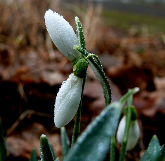 Schon seit etlichen Tagen blühen die Schneeglöckchen als verfrühte Vorboten des Frühlings. Bei dem Eisüberzug sind sie geschlossen, sehen aber sehr frisch aus.