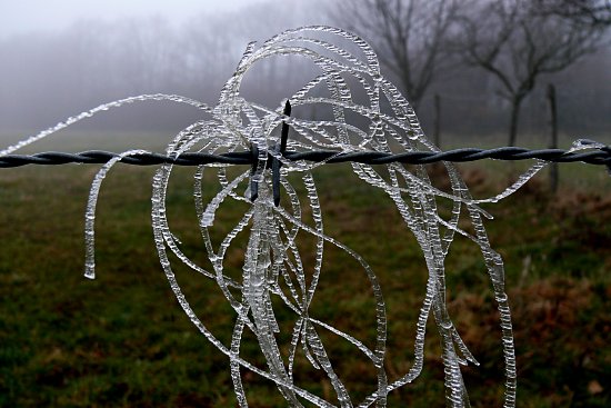 Und so, wie diese Serie begonnen hat, so soll sie auch enden: Mit zarten Kunstwerken aus Eis und Haar am dornigen Stacheldraht.
