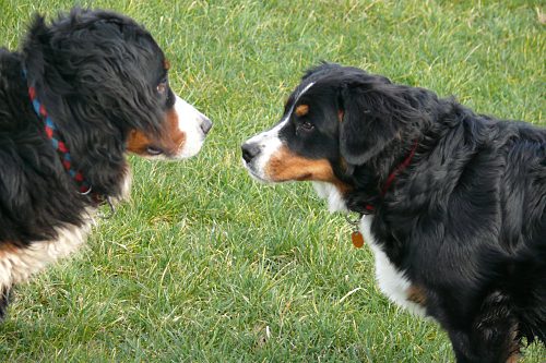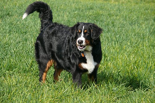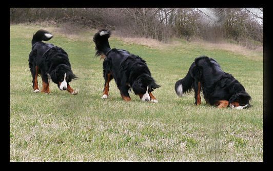 Fotomontage: Domino setzt an, um sich zu wälzen.
