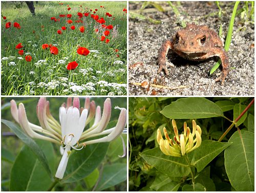 Unter anderem findet man auch das inzwischen selten gewordene Waldgeißblatt (Foto oben, untere Reihe).