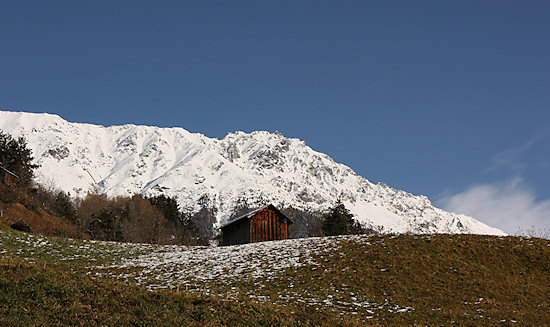 Hier die gleiche Blickrichtung mit wesentlich geringerer Brennweite. im Vordergrund liegen Prutz und Faggen.