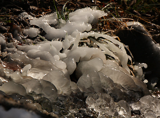 Ein kleines Rinnsal, zu Eis erstarrt.