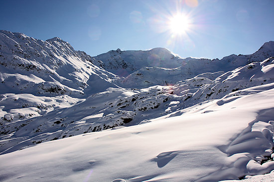 Schnee, Berge und Sonne ergeben eine wunderbare Kombination.