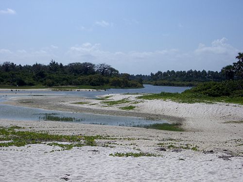 Ein Fluss, der bis zum Strand reicht, aber keinen Abfluss hat.