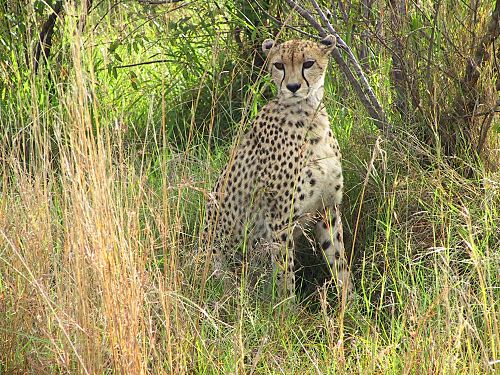 Gut getarnt im Gras lauert die Raubkatze auf eine Chance, mit einem Überraschungsangriff Beute zu machen. Dabei erreicht sie über 100 km/h, allerdings nur auf sehr kurzen Strecken.