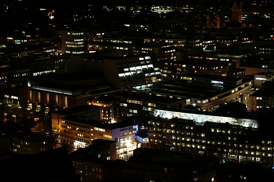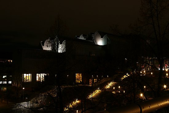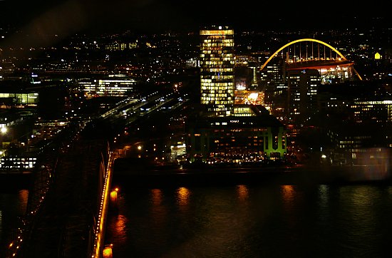 Von dort aus hat man auch einen schönen Blick auf die Dachkonstruktion des Museums Ludwig sowie die große Freitreppe, die zum Rhein hinab führt.