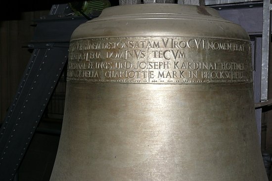Hier eine der "kleineren" Glocken. U.a. sind hier die Kardinäle Frings und Höffner verewigt.