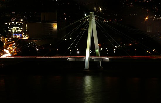 Mit viel Zoom auf die Rodenkirchener Brücke, über die die Autobahn A 4 führt. Köln ist aber nicht nur mit dem Auto, sondern auch gut per Bahn und Flugzeug zu erreichen.