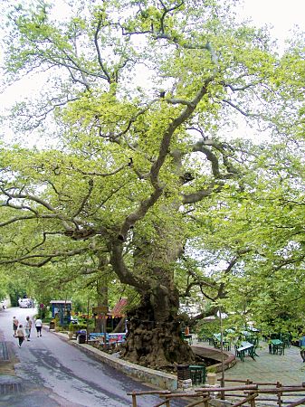 In Krasi steht direkt gegenüber einem venezianischen Quellhaus die größte Platane Kretas.