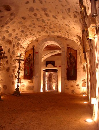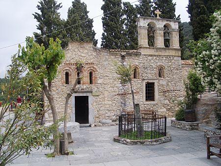 Ebenfalls auf dem Weg liegt eines der bedeutensten Klöster der Insel, Moni Panagia Kera Kardiotissa. Den Innenraum mit teilweise erhaltenen Wandmalereien aus spätbyzantinischer Zeit darf man leider nicht fotografieren.