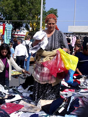 Unser dritter und letzter Ausflug führte uns zunächst auf den samstäglichen Zigeunermarkt am Hafen von Heraklion. Um keine Missverständnisse aufkommen zu lassen: Trotz des Namens werden hier keine Zigeuner verkauft! Aber eben diese verkaufen ebenso wie die einheimischen Bauern so gut wie alles. Dabei scheint das Motto zu lauten: Wer am lautesten schreit, verkauft am besten.