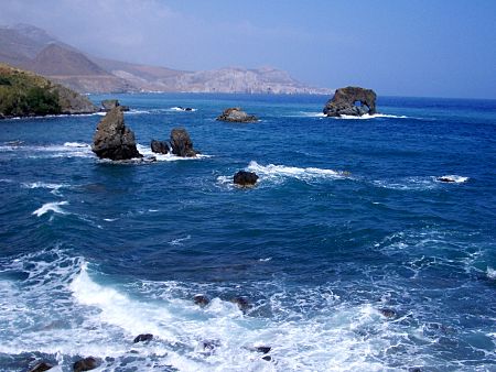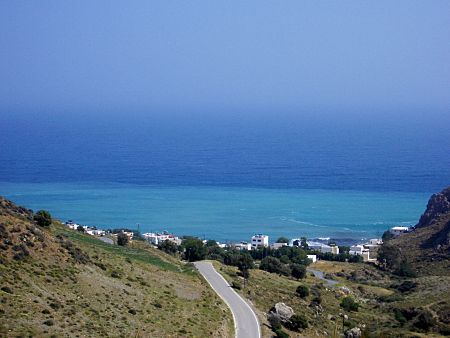 Von dort aus ging es über eine recht gut ausgebaute Strasse in schier endlosen Serpentinen hinunter nach Lendas (Lentas). Dort fanden wir das schönste Örtchen mit dem schönsten Strand. Da hier nur ein mal am Tag eine Bus von Heraklion kommend ankommt, ist Lendas vom Massentourismus weitgehend verschont worden. Aber wir wurden verschiedentlich auf der Strasse freundlich und nicht aufdringlich gefragt, ob wir eine Unterkunft suchen würden.