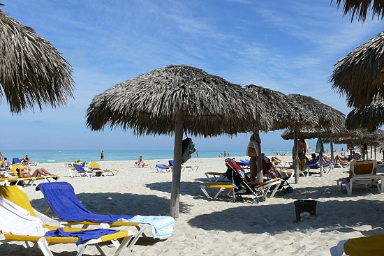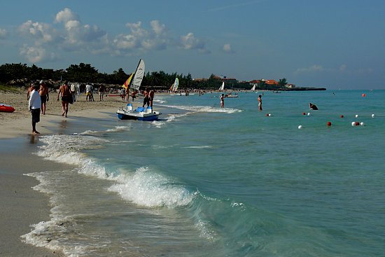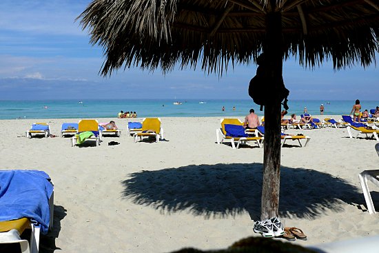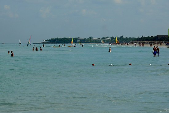 Und natürlich ebenfalls ein Blick in die entgegengesetzte Richtung, also auf das Ende der Landzunge. Da der Strand aber insgesamt 19 km lang ist, ist dort hinten noch lange nicht das Ende. Und man kann völlig ungestört am Strand entlang laufen, ohne ständig angequatscht zu werden oder gar um seine Sicherheit fürchten zu müssen. Wir haben uns sowieso nie unsicher gefühlt, auch nicht im Landesinneren. Dazu kommt, dass hier in Varadero die Strände in touristische Zonen eingeteilt sind, in die man so ohne weiteres wahrscheinlich als Einheimischer gar nicht herein kann.